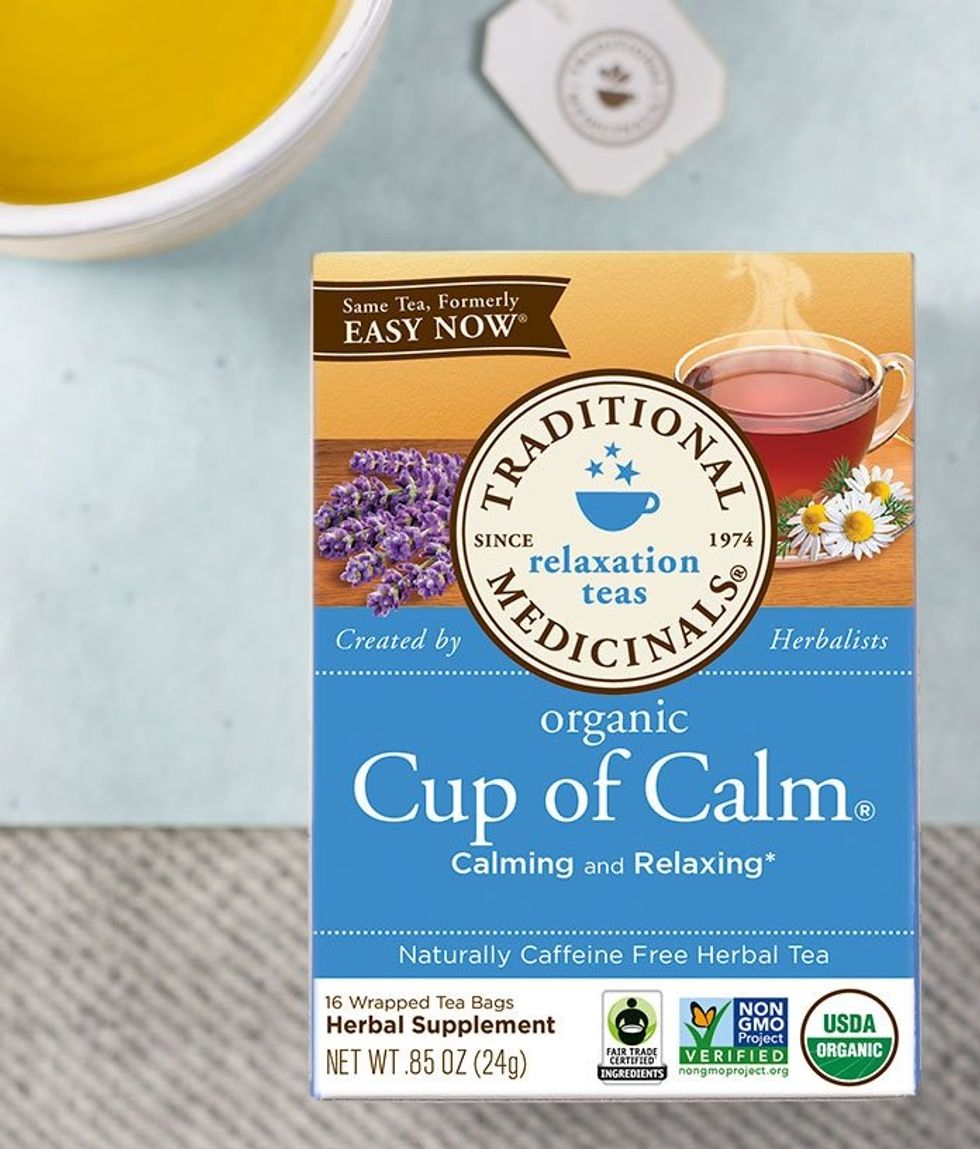 What sounds more soothing than a “Cup of Calm”? Traditional Medicinals knows all about relaxing with a nice mug of tea, and their Cup of Calm is relaxation at its best. An herbal blend of passionflower, chamomile, lavender, and catnip will have you drinking your way to decompressing with an apple-minty floral flavor you’ll love. And no, catnip isn’t just for our feline friends. As per Dirt On My Hands Gardening, catnip has mild sedative and soothing properties. WebMD adds, Catnip is used for trouble sleeping, anxiety, and headaches. This tea may be “traditional” but when it tastes and works as well as it does, why mess with a good thing?