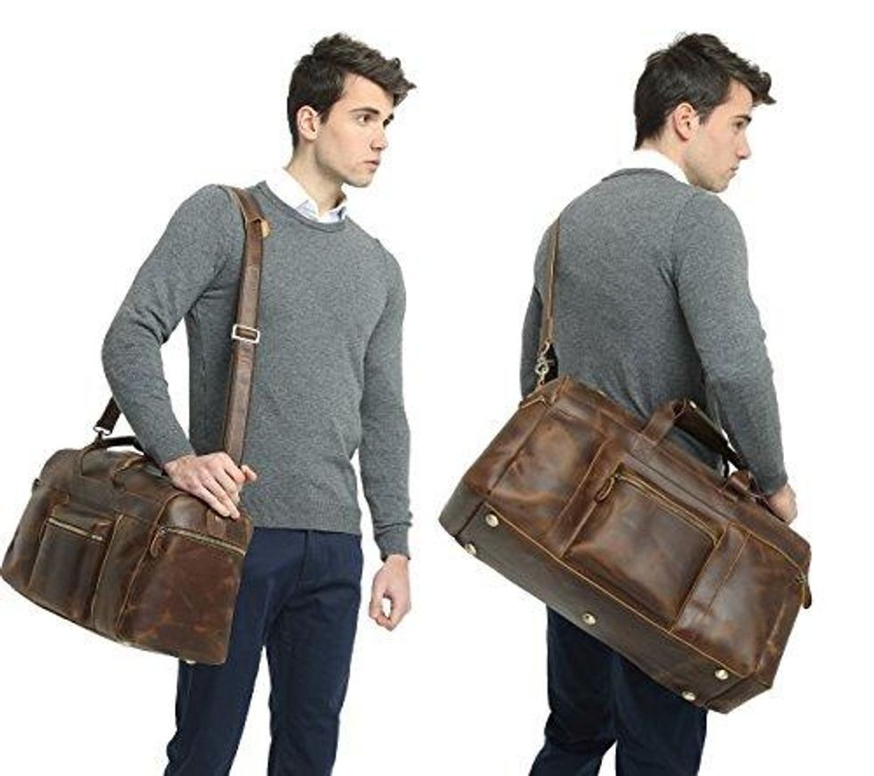 If you’re all about style, this genuine leather duffle is a beautiful and timeless classic. The leather is thick and solid, which means you’re making an investment in a bag with a long life. There are plenty of pockets with sturdy well made zippers so you can store everything you need with easy access. This bag is timeless, looks more expensive than it is, and adds a professional stylish appeal to your luggage.