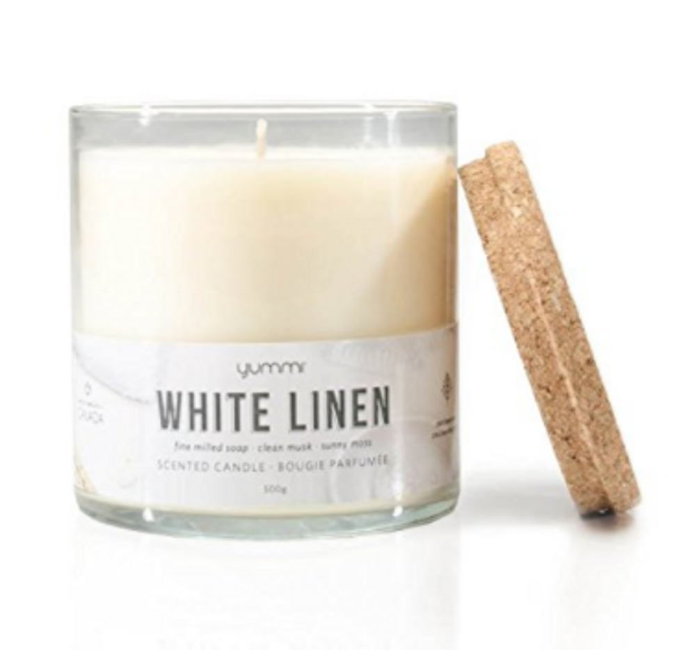 The classic and clean scent of white linen is always pleasing, and Yummi Candles White Linen does not disappoint. Made with 100% sustainable plant-based wax and essential oils, this freshly-scented candle is natural and long-lasting. The jar is as crisp as the scent, and the cork topper is a nice and neat touch. Snuggle in your white linen sheets as you focus your eyes on the Yummi flicker!