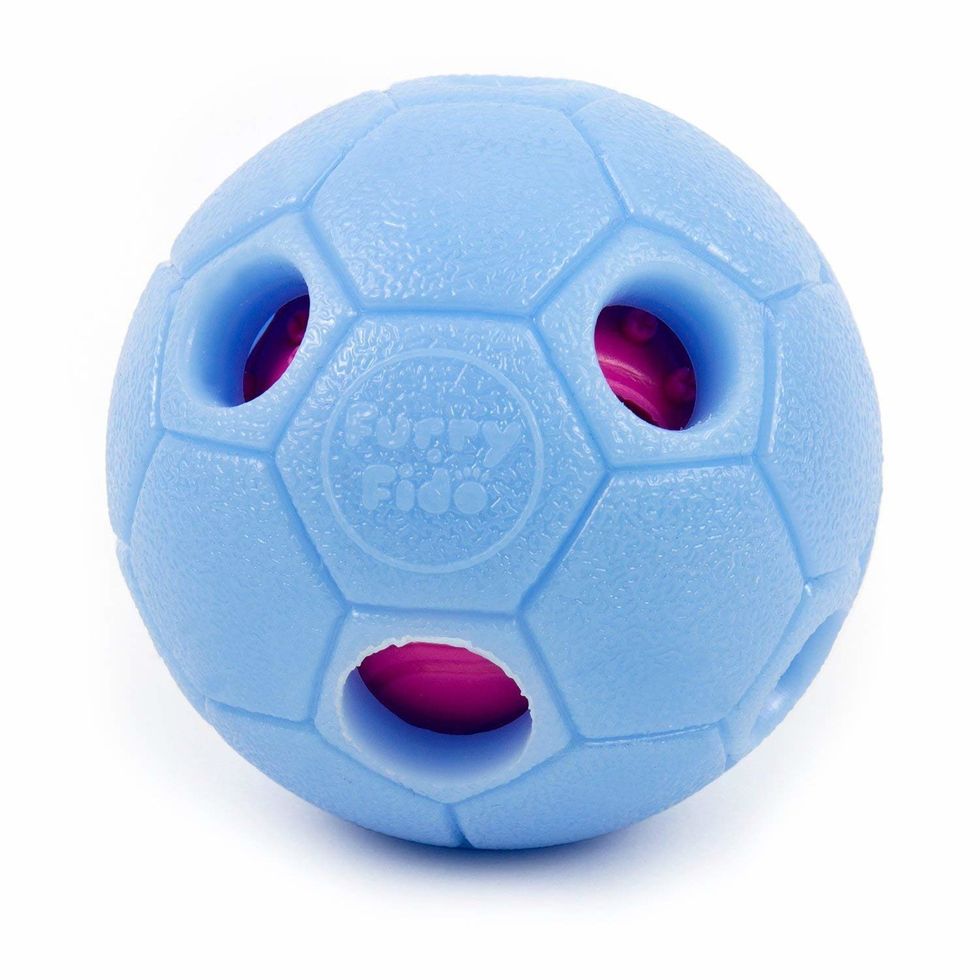 When your dog chews or rolls the ball a treat will fall out. The ball is designed to dispense treats one by one. It’s a great option for puppies, because it’s safe for chewing and designed to promote good gum health. Made of non toxic, durable rubber, the interactive ball massages gums and helps clean tooth enamel.