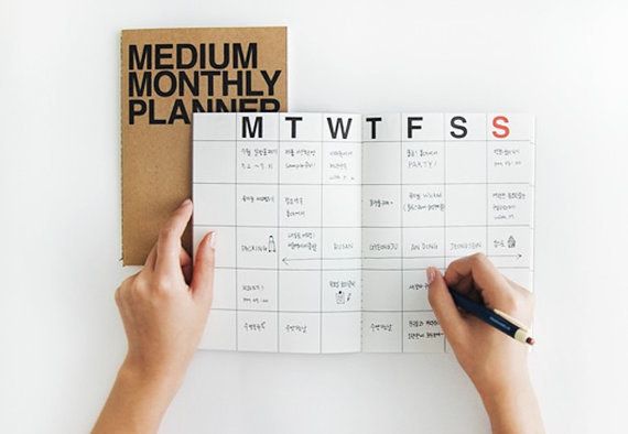 If you prefer a simple monthly overview, check out this Etsy Kraft Monthly Planner.The notebook includes monthly calendars for the entire year. This compact planner doesn’t have any note pages, which makes it thin enough to carry around with you easily. It comes in multiple sizes ranging from small to large. Pick the size that fits your style and get planning.