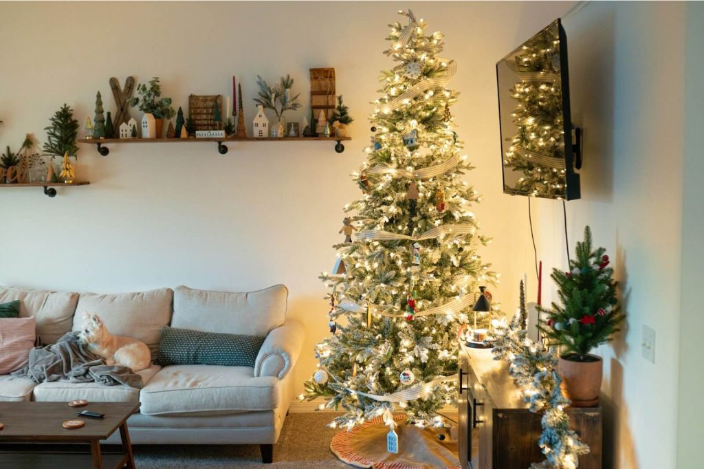 The winter white hue works wonders in smaller spaces, creating the illusion of a more open room and lending a touch of sophistication to your home that a traditional green tree simply can’t match.