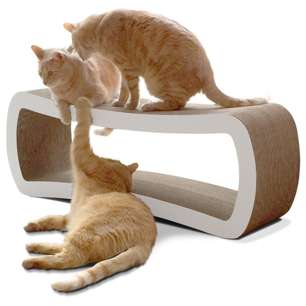 Want your cat to quit clawing at the furniture? Get her the PetFusion Jumbo Cat Scratcher Lounge for safe scratching and snoozing in style. This 2-tiered scratching lounge is long and durable, with an organic catnip leaf for an extra-special treat for your feline friend. Made of recycled cardboard, this elegantly curved scratching lounge is eco- and kitty-friendly. Up to 4 cats can use at once, making it a scratching soiree!