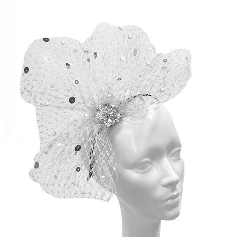 Sequins, sparkle, and style make theWhittall & Shon Fascinator Derby Hat super-chic and star-worthy. Even Harry’s new bride would blush at the sight of it. The lovely handiwork, glittery stones, and voluminous shape make this fashionable fascinator fit for a princess. Imagine walking into the room with a piece of artwork atop your head. Even a bride would hand over her veil for a chance to shine in this precious piece.
