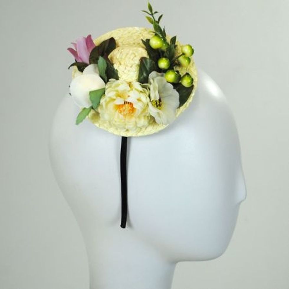 Sweet, simple, and summery, the Jeanne Simmons Pique Nique Fascinator is demure and delightful, adding a flirty and fun-loving floral touch to a breezy ensemble. The tiny straw hat and artistically-designed flower arrangement adds a touch of nature to any look. Get garden gorgeous with this fascinator find.