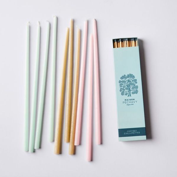 I pretty much always have a candle burning. For the vibe. And while I save my nice scented candles for specific moments, I’ve tons of colorful beeswax candles that give an inviting ambiance. Place them on your mantle or drop them inside teacups or wine glasses for a romantic, eclectic mood-booster.