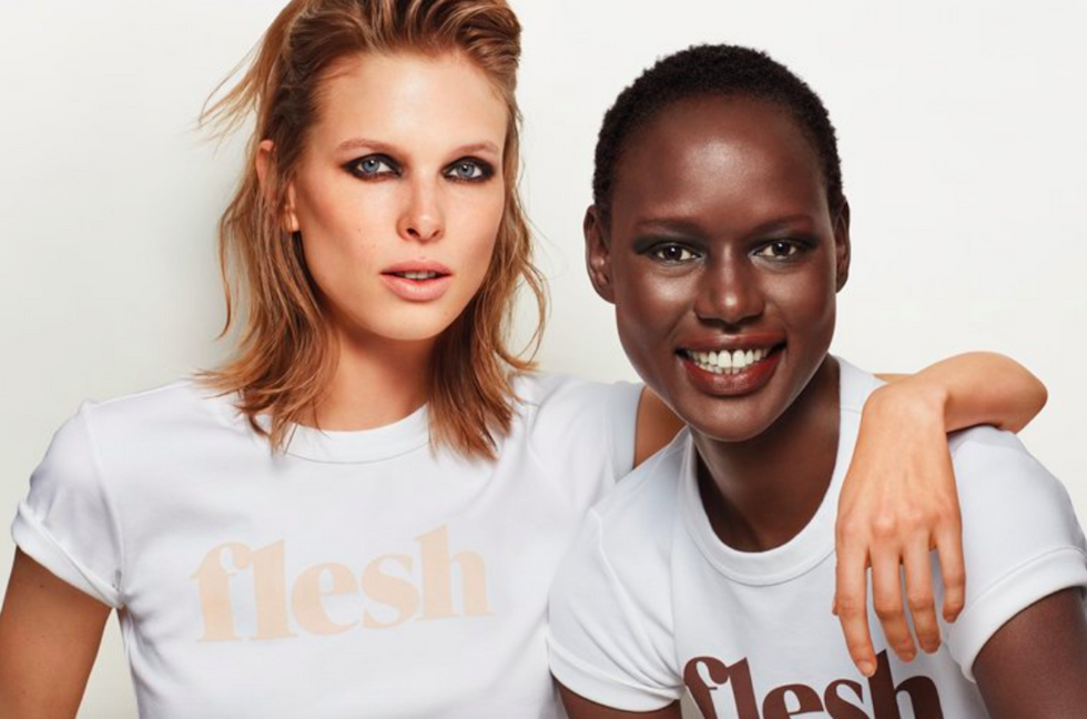 Flesh Beauty launched early this summer, created by the former editor of Allure and current Chief Creative Officer of Revlon, Lindsay Wells. The unconventional name represents the backbone of the brand’s mission, bred from Wells’ years of frustration of “flesh” being used as an interpretation of just one color. On the Flesh website, this frustration is described using crayons as a prime example: “When you were little, you probably reached into a box of crayons and found a peach one labeled “flesh.” Naturally, you assumed that’s what you should use to fill in the people in your coloring book…The point is, the word “flesh” was a fallacy that entered your consciousness before you were even old enough to question it.”