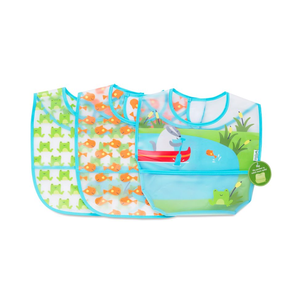 Eco-friendly and adorable, Green Sprouts Wipe-Off Bibs are a baby’s mealtime must. Easy to clean, comfortable to wear, and designed with a wide-scoop bottom for collecting dribbles and crumbs, these bibs will keep messes off your “mini-me” and make splatters and spills a non-issue. The 3-pack has an “aqua pond” theme, making for a fun feeding time fashion statement.