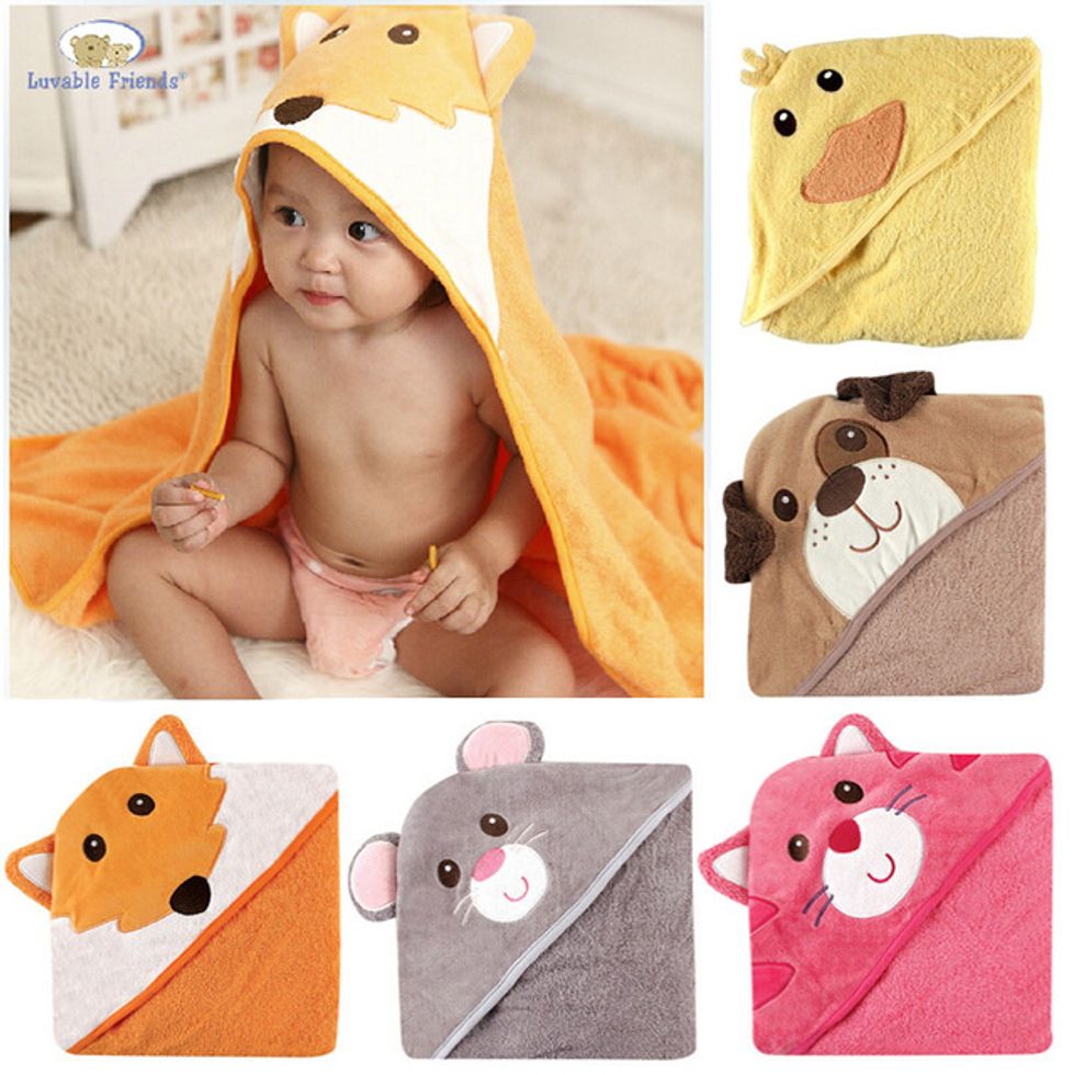 Luvable Friends Animal Face Hooded Woven Terry Baby Towel