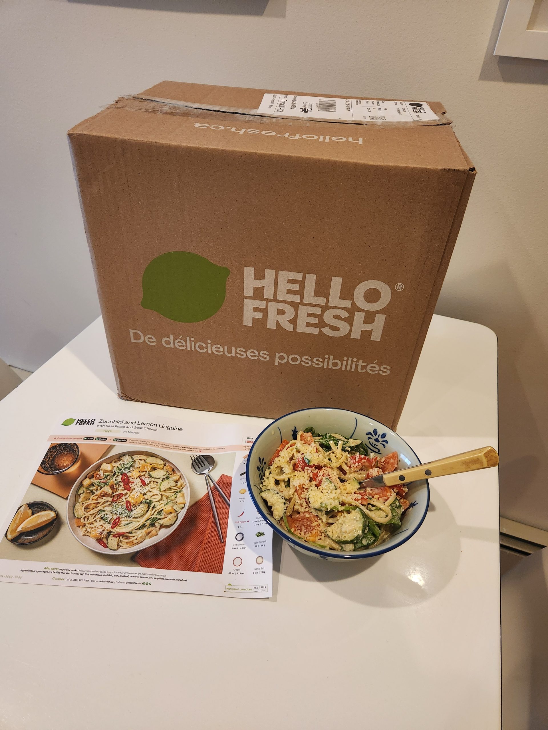 HelloFresh handles food shopping and meal planning, then ships everything directly to our doorstep so I avoid the grocery store madness. Super convenient! Plus, the ingredients are packed in a recyclable, insulated box with ice packs that keep them fresh until they reach our fridge.