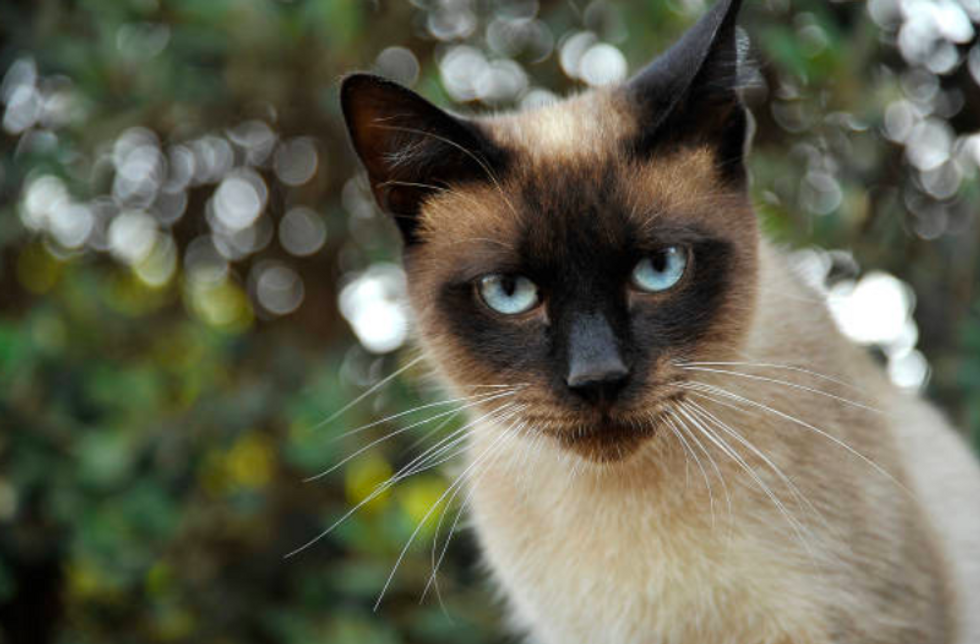 The Siamese are a recognizable breed with a distinctive look. The bright blue eyes and large ears are standard but the coloring can range between light and dark. These cats are outgoing and usually very talkative. These cats love to be surrounded by the people they love. The Balinese and Siamese are cross bred frequently so they are very familiar in appearance.