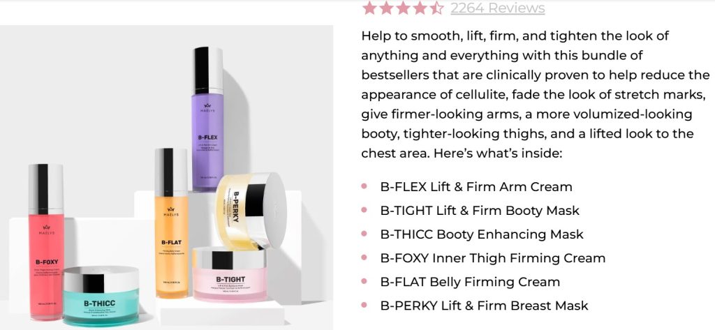 MAЁLYS B-TIGHT works so well for me that I’m exploring the rest of their product line. Next up? I’m going for B-FLAT Belly Firming Cream ($49). and the B-PERKY Lift & Firm Breast Mask ($49). MAЁLYS fabulous collection helps reduce the appearance of cellulite, fade the look of stretch marks, give firmer-looking arms, a lifted look to the chest area, tighter-looking thighs, and a more volumized-looking booty. And if you wanna do a full body makeover, check out MAЁLYS Bestselling ICONS Bundle.