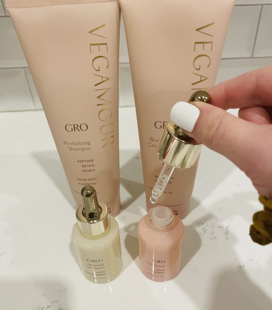 Vegamour is the clear winner. And the serum is just the beginning! They have a whole line of GRO products from everything like dry shampoo (which I always need more of), shampoo and conditioner, and even yummy little gummies.