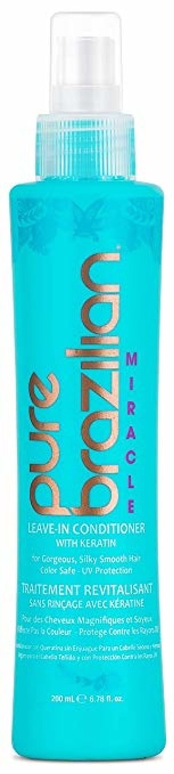 This keratin-rich formula repairs dry and damaged hair while sealing in moisture for protection against frizz. Additionally, rose water and crushed pink sea pearls promote softness and shine. With a fresh, floral scent and silky smoothness, Pure Brazilian’s leave-in conditioner makes styling easy in addition to nourishing hair.