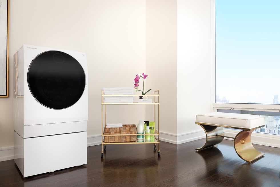 The LG SIGNATURE washer/dryer combo sleek design is perfect for city dwellers with limited space. The machine allows you to complete two washes at once and keeps track of your usage patterns. The appliance also has an Auto Dosing System, which will determine how soiled the clothes are and automatically dispense the correct amount of detergent needed to clean them. This means less waste and more efficiency. The smart machine lets you manage your laundry remotely using LG SmartThinQ® technology. Its practical size and modern technologies makes this appliance essential in any smart home.