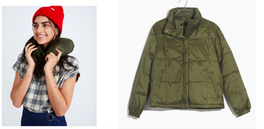 Not only is this Madewell jacket toasty warm, but it packs into the shape of an airplane-ready travel pillow that deserves a Nobel Prize. With a playful, cropped A-line shape, this PrimaLoft-insulated jacket is as warm as down and made of 100% recycled content (fun fact: this jacket = 6 plastic bottles).