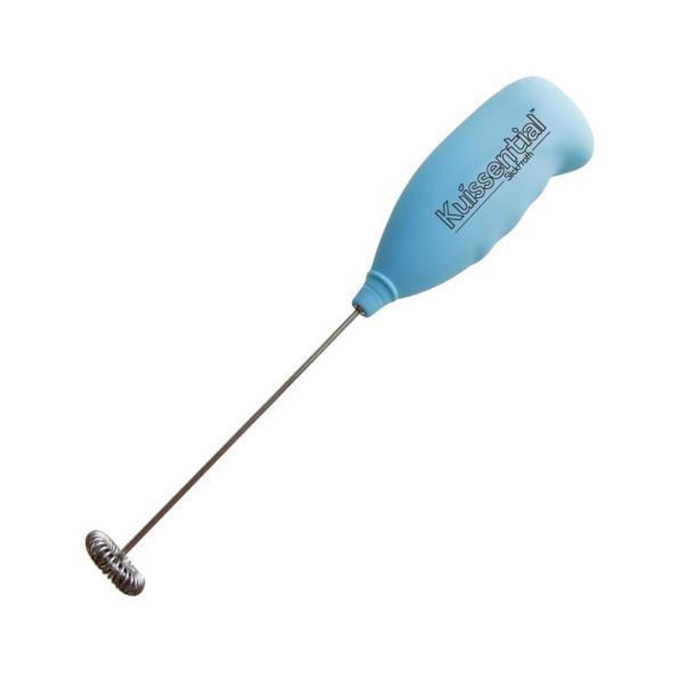 Handle-design appears to be where your standard hand-held frothing device makes an attempt to distinguish itself on the marketplace. Bodum, a storied and Swiss designer of such things as futuristic toasters and napkin dispensers that look vaguely like guillotines, goes for the strange and sleek look in their “Schiuma” Milk Frother-line, recalling something from a Murakami novel. (“Schiuma” is the Italian word for foam.) The aforementioned folks at Mind Reader go for a soft-office design, and literally call their product “Foam,” and it’s something that could fill up space in the kitchenette of your corner startup. Kuissential, who shot me a copy of their own device, godbless’em go for a cool baby blue. It feels like t-shirts.