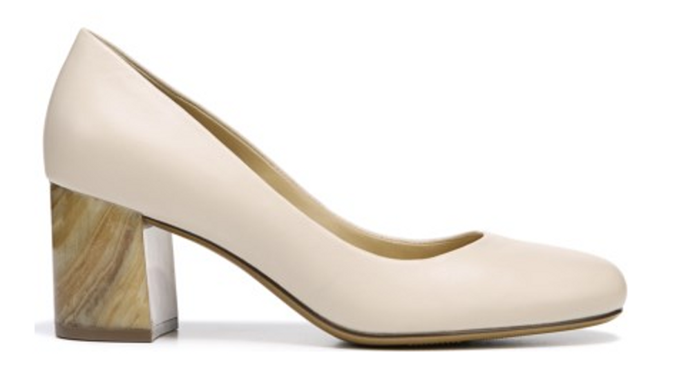 Instead of stilettos or high heels try chunky heels (doctors recommend no higher than 2 inches). Lower heals with a wider pump help distribute your weight evenly, keep feet in a more natural position, and won’t put stress on your bones. If you’re looking for comfortable shoes that you can wear to work or a night out, try Naturalizer’s adorable round-toed Whitney heel ($100).