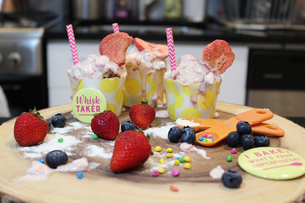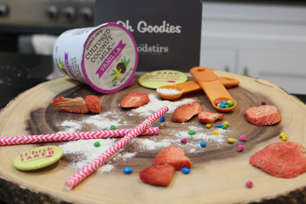 Their kits provide you with all the major components you need, and then some. The box comes with FoodStirs’ Organic Shortcake Mix, FoodStirs’ Organic Vanilla Frosting Mix, freeze dried strawberries, True Lemon packets, cupcake liners, cocktail straws, and a piping bag! All I needed to provide was butter, milk, and yogurt – EASY.