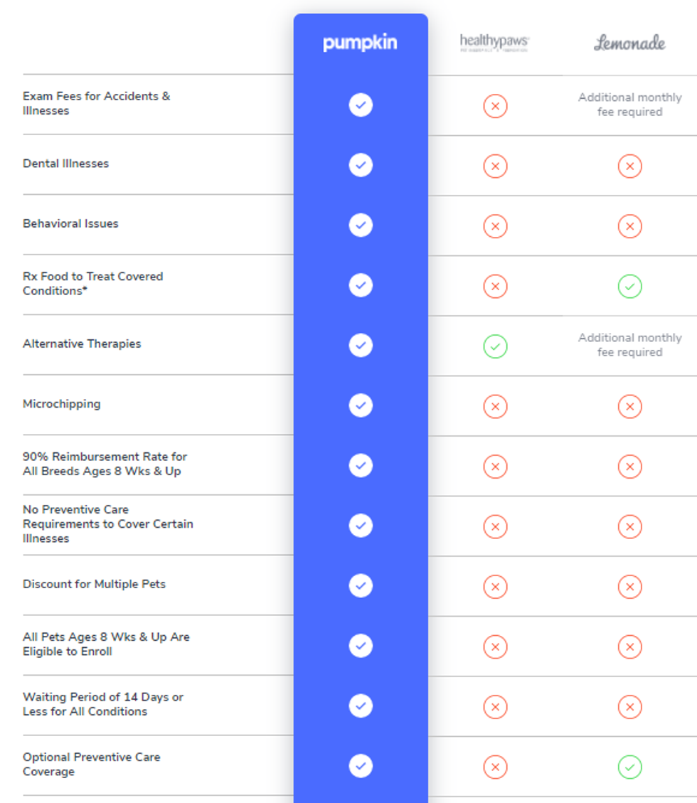 Here’s a screenshot from Pumpkin’s site that illustrates how Pumpkin differs from Lemonade and Healthy Paws.