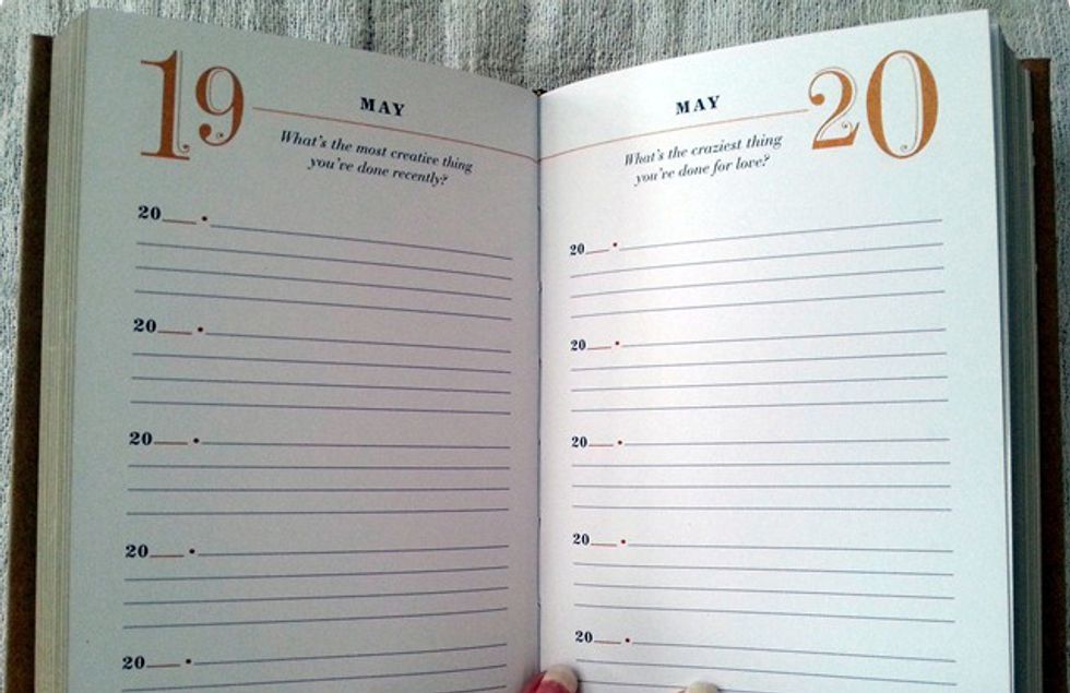 This journal spans over five years (not numbered, so it can begin or leave off at any given year), asking you profound questions that you will eventually have different answers to the more you grow. Questions like “what’s the craziest thing you did for love?” and “on a scale of one to ten, how happy are you?” are some of the tougher ones that will make you look back and reflect. Your answers over this time span are the ultimate truth-teller. It’s interesting, and quite profound, to see yourself growing up right before your eyes.