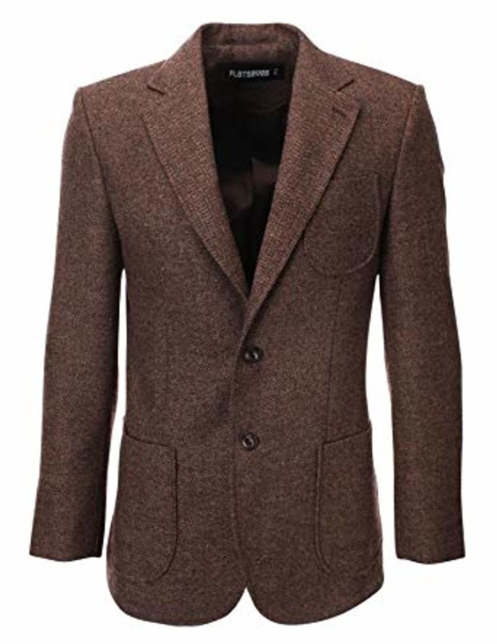 2. FLATSEVEN Mens Herringbone Wool Blazer Jacket with Elbow Patches