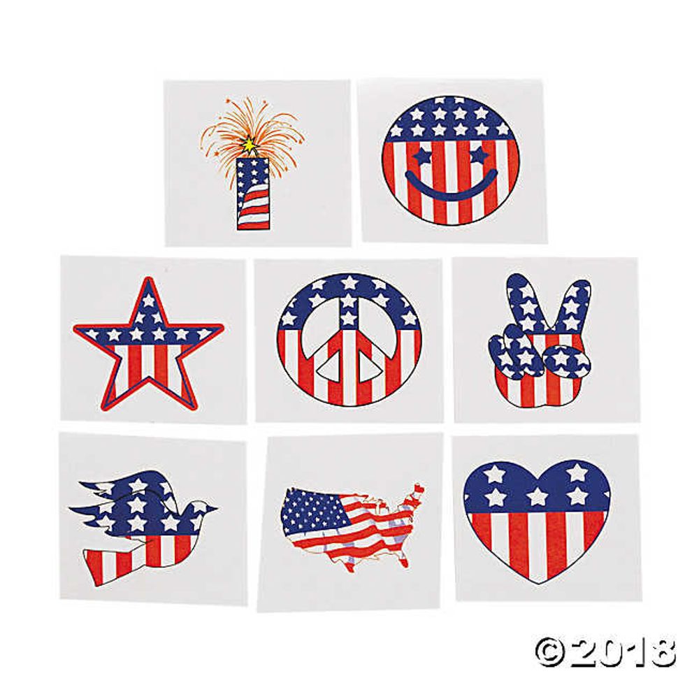 If you are not ready to ink up permanently, test the waters with temporary tats for the fourth. Oriental Trading Company makes some super-cute patriotic glitter tattoos that feature the flag, fireworks, and all-around fondness for the U.S.A. They go on easily, they’re safe for your skin, and they are a great way to show off your dedication to the day.