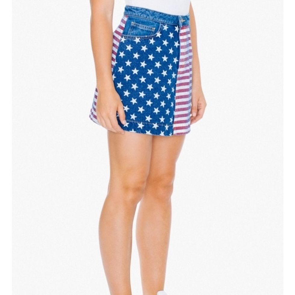 Show off your great legs and your holiday spirit in a cute denim mini from American Apparel. Stars and stripes sure look nice on this slim-fitting skirt perfect for those sultry summer days and nights. Pair with a crisp white tee or tank and your fourth look is complete. American Apparel is the perfect brand to wear as you celebrate this American holiday. Comes in sizes XS – L.