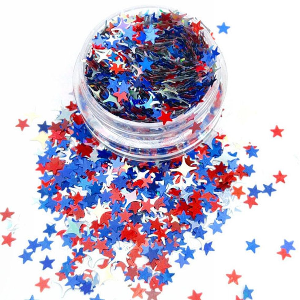July 4th is all about the stars and stripes, so get your glitter on and show off your summer shimmer. Body glitter may not be for the everyday, but when you’re celebrating, it’s time to shine. Glue a few of these red, white, and blue holographic stars from DazzleMeGlitter to your face and body to stand out and stand proud. You’ve always been a star, after all.