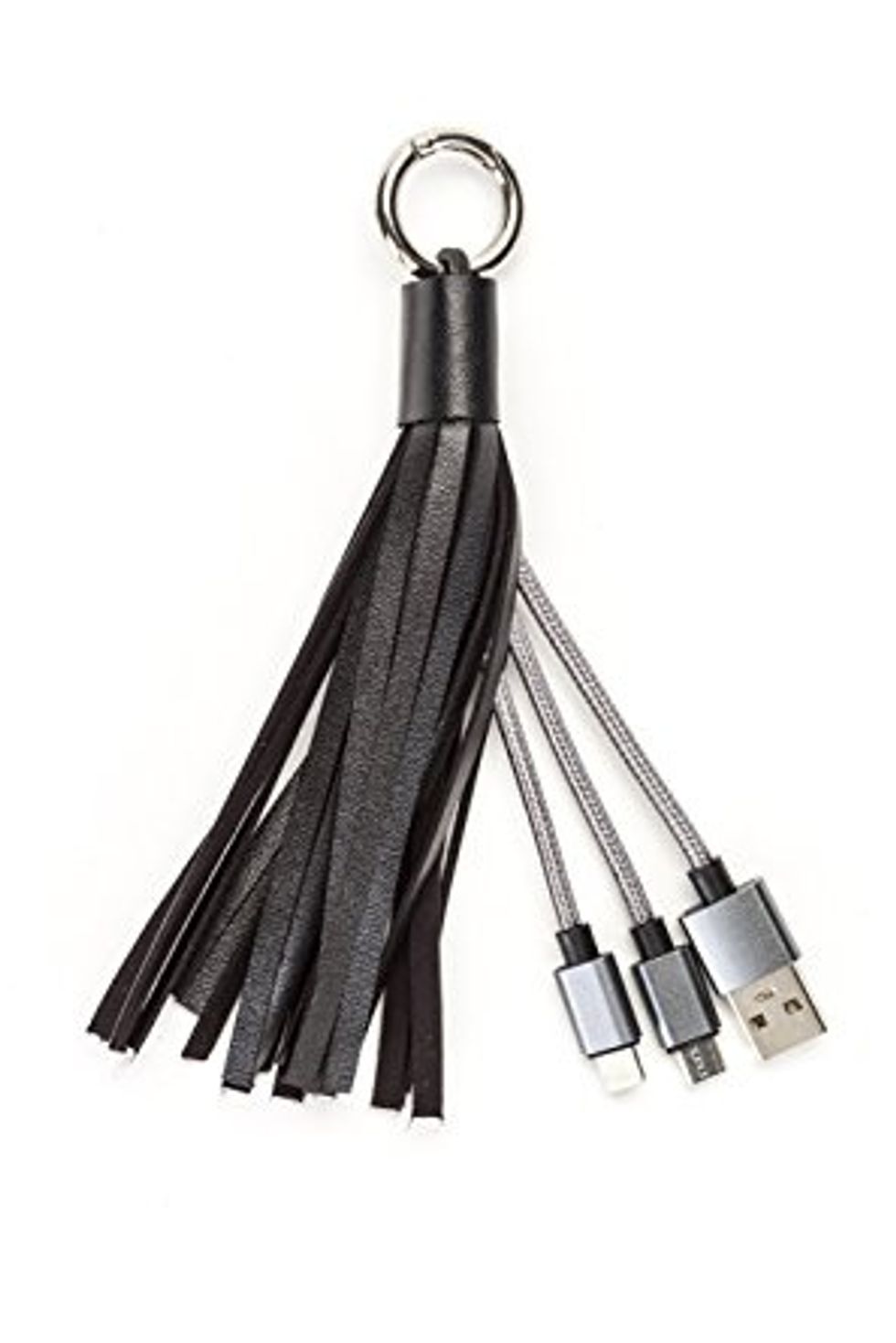 “When fashion meets technology your data- and charging cables become a fashion statements. This playful, fashionable tassel can easily be attached to your keys or handbag and includes a macro USB, a micro USB and a lightning cable,” reads the product description. “The ONLY such product worldwide that works for your Apple, Android and all micro USB compatible products such as your Kindle.”