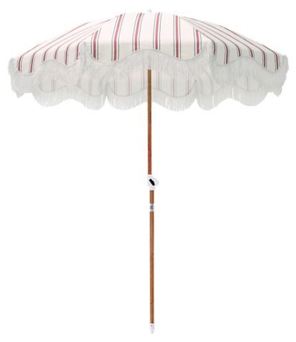 Functional and fashionable, theBusiness & Pleasure Co. French Stripe Beach Umbrella is sturdy yet lightweight. Water and UV-resistant, this easy-to-transport umbrella will make your day at the beach comfortable and chic, a pleasure indeed. Fancy French stripes…ooh la la!