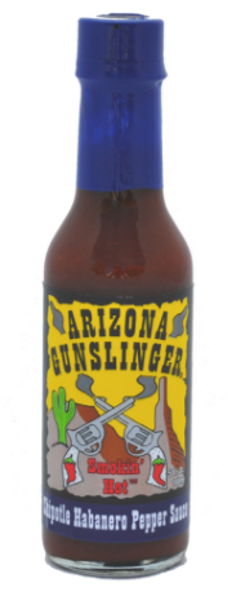 Have your habanero and eat it too with Arizona Gunslinger Chipotle Habanero Pepper Sauce. So smoky and flavorful, this hot sauce is tasty on just about anything, from fresh salads to grilled steaks. The habanero is hot, but not too hot, and the chipotle brings out the finest flavors of your favorite foods, especially Mexican cuisine. A hint of sweetness makes this sauce well-balanced and keeps you coming back for more. Arizona is known for being hot, and Arizona Gunslinger pays homage to the heat.
