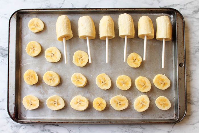 Note: Freeze the banana pops on a sheet pan too. Another use for this handy surface.