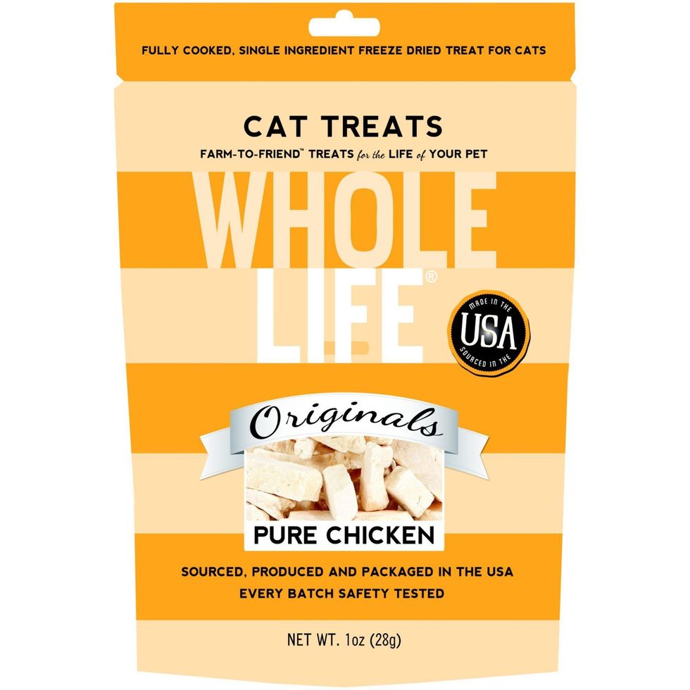 I first learned about Whole Life pure freeze-dried cat treats at a pet shop in Manhattan that was all about feeding pets the best of the best. Four flavors were available – chicken, turkey, salmon, and cod. And guess what? Each bag contained a single ingredient, the aforementioned 4 foods, respectively. The meat is freeze dried and bagged. That’s it. No preservatives, grains, or gluten.