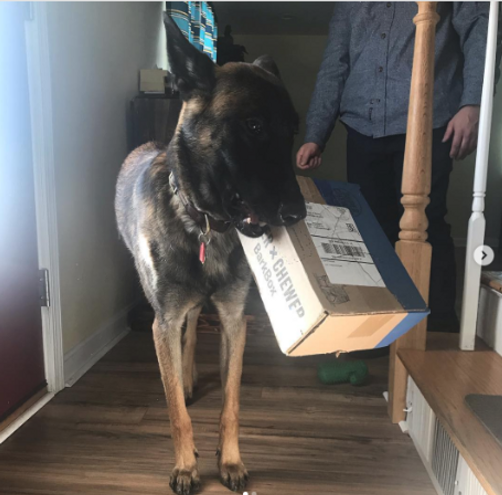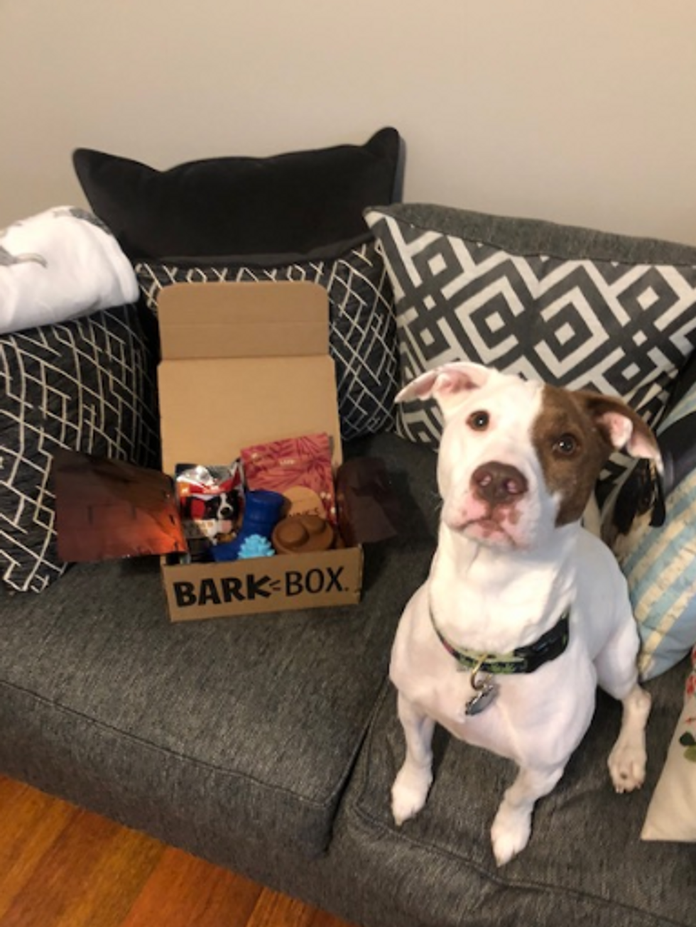 “Storm received her first #superchewer #barkbox today. Her reaction to it was priceless, wish we signed her up sooner 🐾🐾 She loves the toys & treats. She even followed me to the kitchen when I was carrying the treats to put them away, which of course she got to have just one more LOL :)”